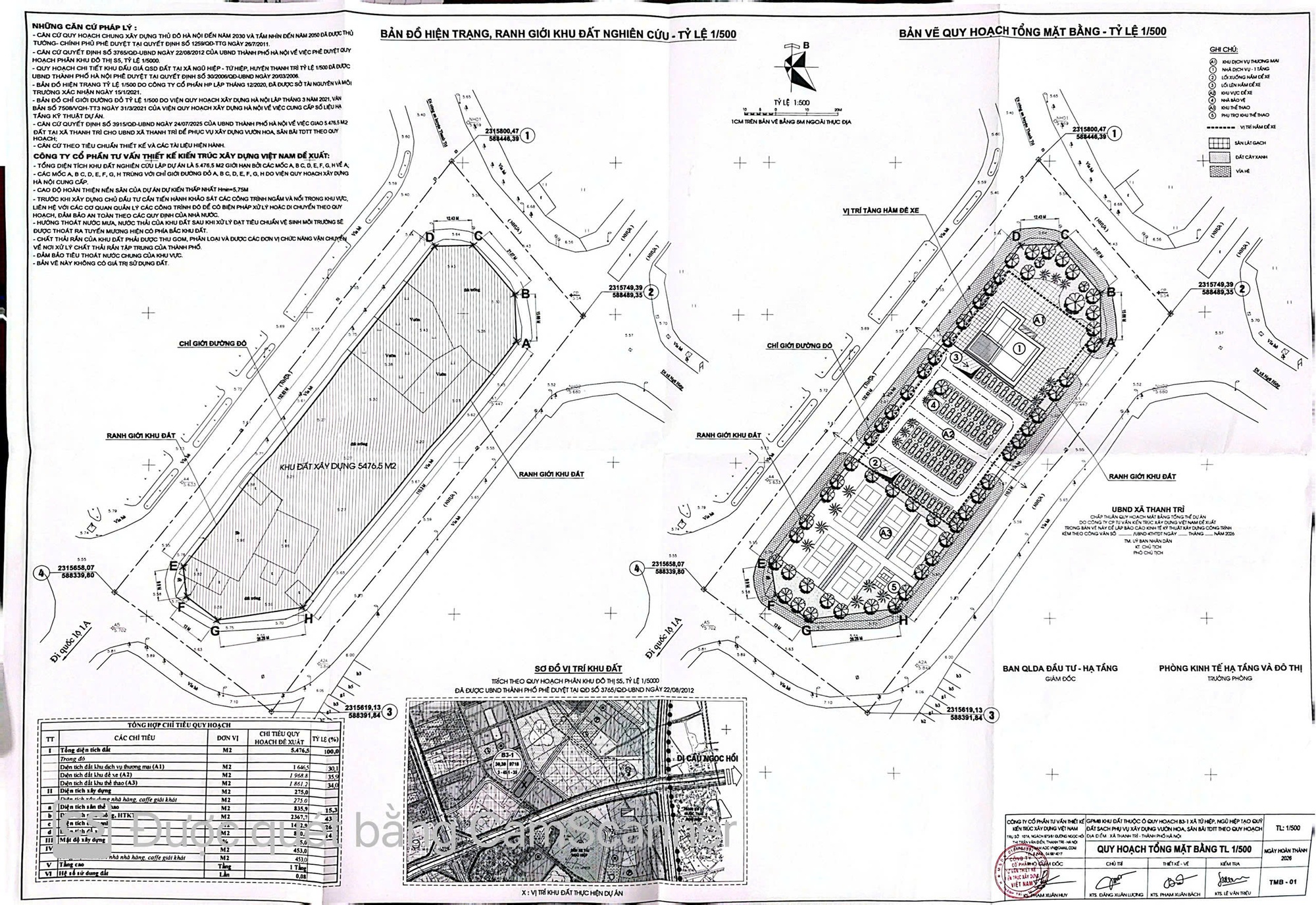 - Tổng diện tích khu đất nghiên cứu: Khoảng 5.476,5 m2.